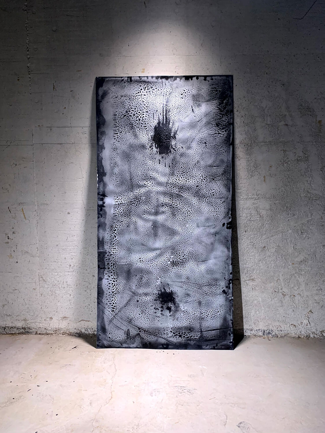 Deep Gaze III, industrial ink, pigment and acrylic spray on canvas, 155x250 cm, 2023